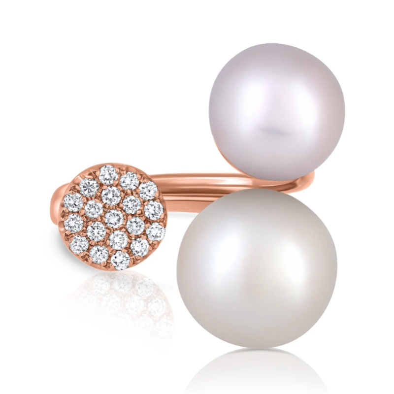 טבעת זהב יהלומים ופנינה קלאסית (העתק)