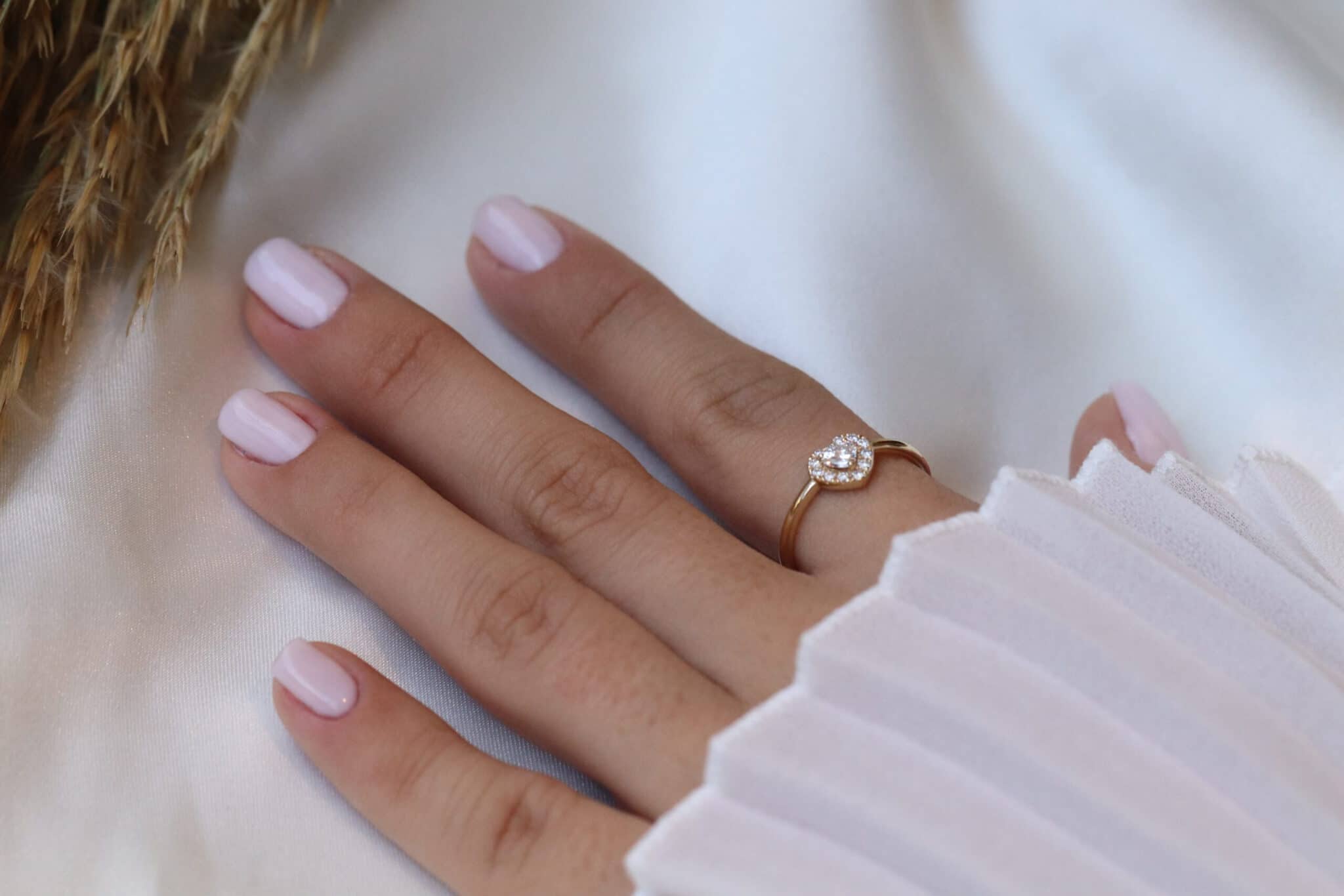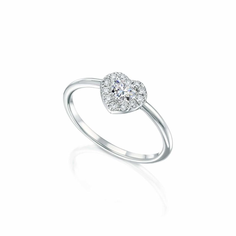 טבעת יהלום לב עם הילו של יהלומים קטנים