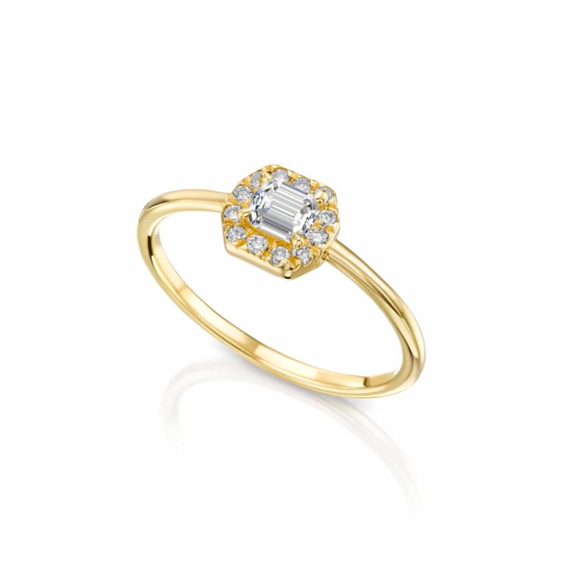 טבעת יהלומים מהודרת, +0.20 קראט, 14K זהב בחיתוך אמרלד.