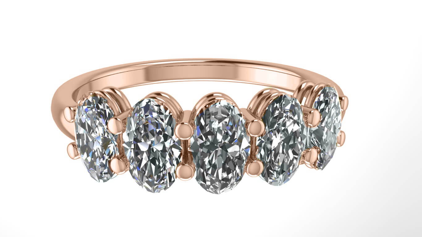 טבעת באנד משובץ ב-5 יהלומים. מרהיב ביופיו בעיצוב אישי.